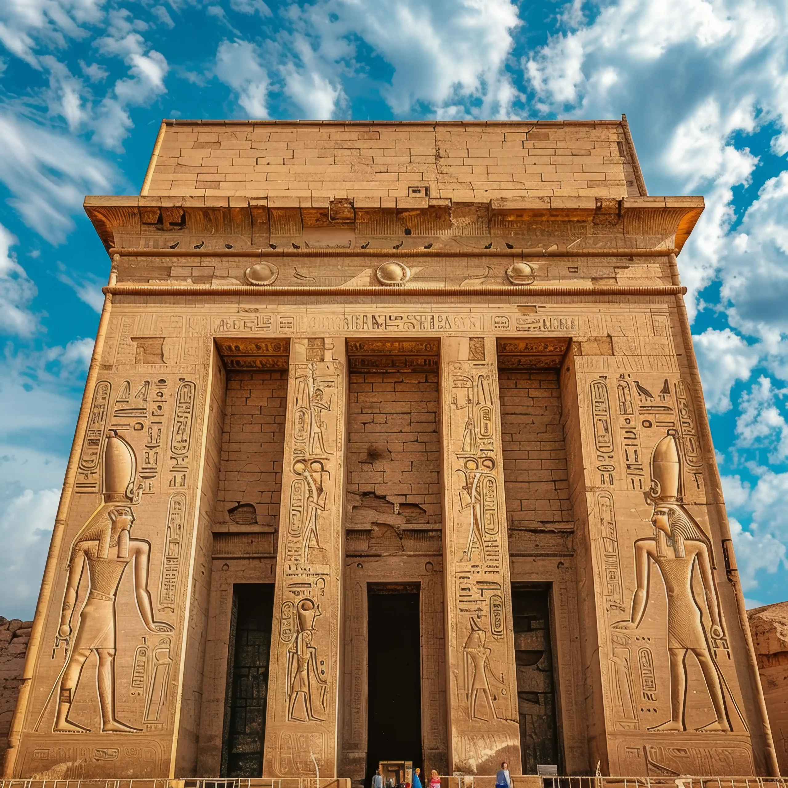 Philae Temple’s architectural beauty is mesmerizing. The grand First Pylon, adorned with reliefs of Pharaoh Ptolemy XII striking enemies, welcomes visitors into a realm of divine artistry. Beyond it lies the Hypostyle Hall, featuring intricately carved columns, and the Sanctuary of Isis, where devotees once worshiped.